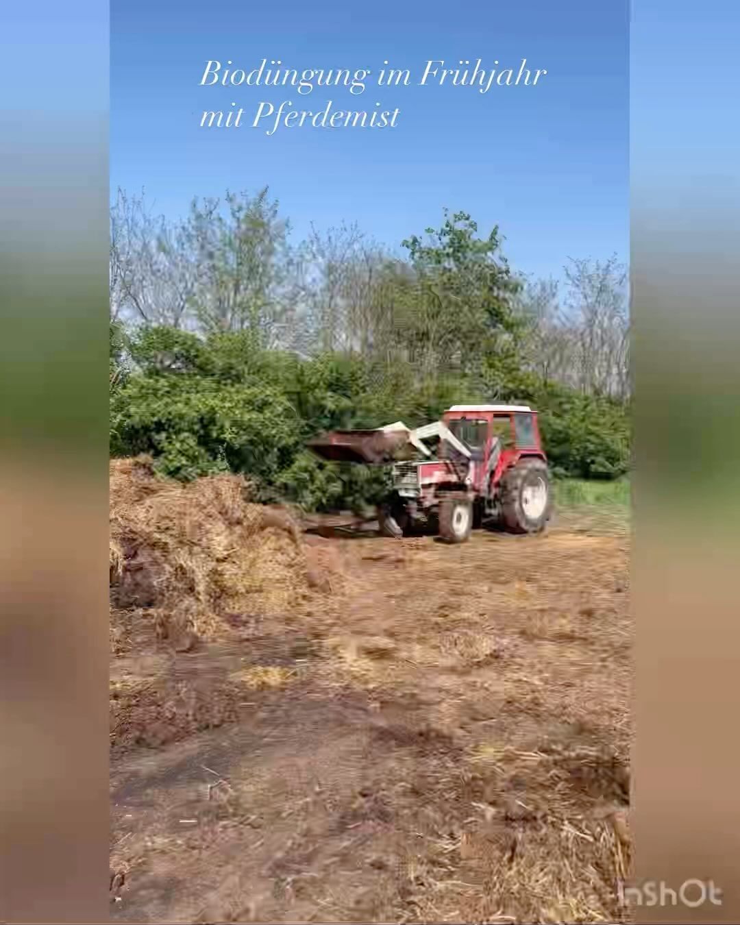 • Wir düngen ausschließlich mit gereiftem Pferdemist. Die vielen Mikroorganismen und Nährstoffe gelangen direkt in den Boden. Die Humusproduktion und das Bodenleben werden merklich verbessert.